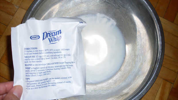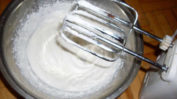 Mezclar leche con látigo de sueño (después de la bolsa) y batir hasta que esponje