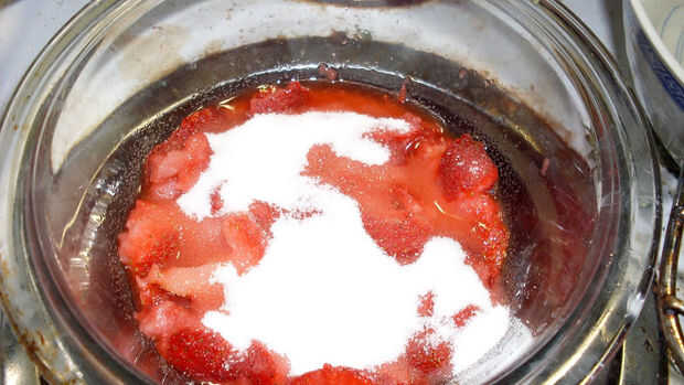 Puré de fresas y espolvoree con el azúcar, deje reposar durante 20 minutos