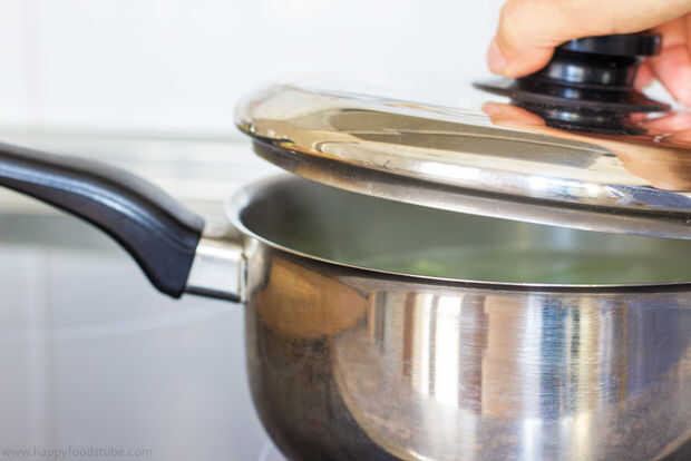 3. llevar a ebullición, reduzca el calor a medio-bajo, Tape y cocine a fuego lento durante 10 minutos.