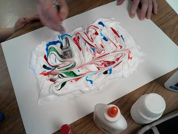 Papel Marmorizado con colorante alimentario y crema de afeitar