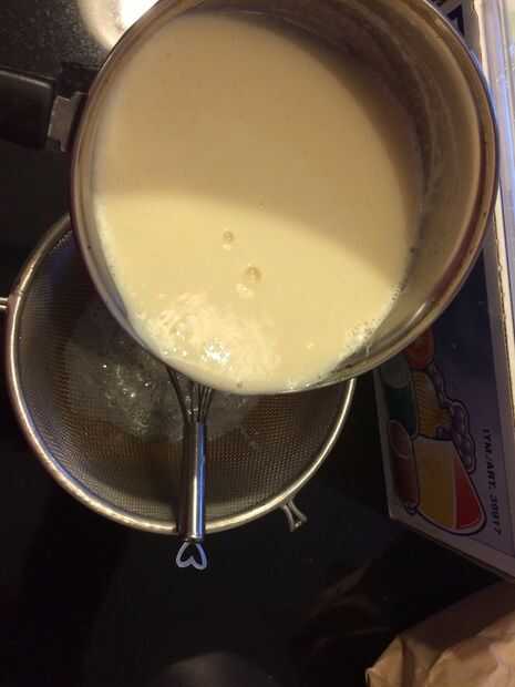 Después de mezclar la leche, vierta la mezcla por un tamiz para eliminar las burbujas de aire. Repita este paso dos o tres veces.