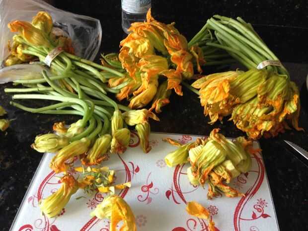 En los supermercados puedes encontrar el manojo de flor de calabaza, son aproximadamente 1 manojo por taza.