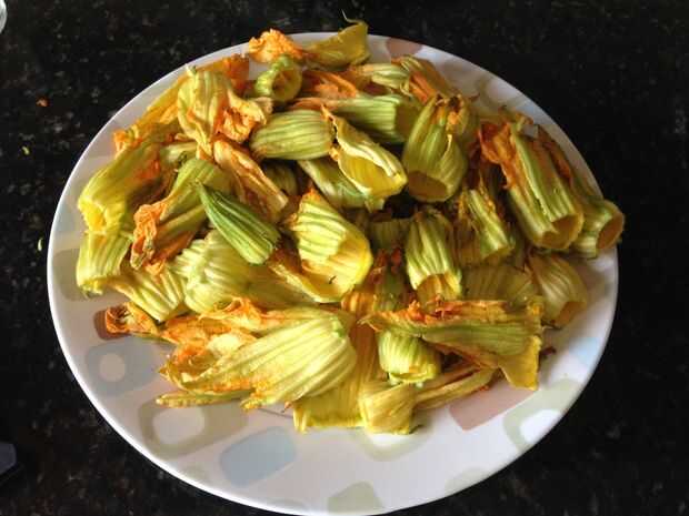 Corta las flores de calabaza desde donde empieza el pétalo y remueve el pistilo. Limpia con agua y déjalas secar.