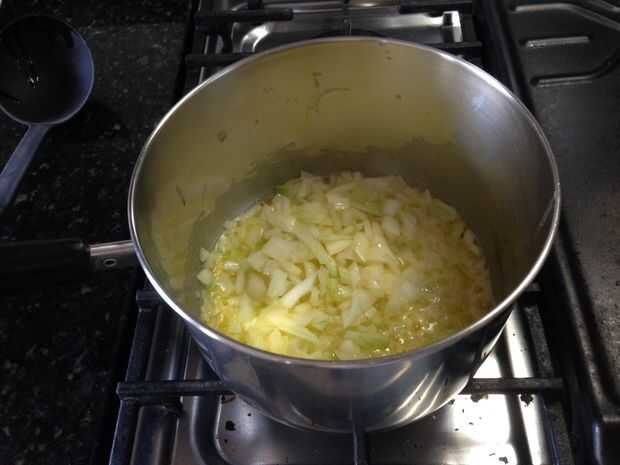 Derrite la mantequilla y el aceite de coco y agrega un dorar la cebolla entre 3 y 5 minutos.