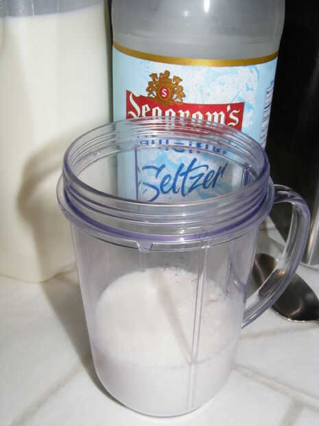 Vierta el seltzer para llenar el resto del vidrio. Puede vertir desde altura de los hombros en el vaso para simular el agua de seltz que sale de la fuente. Forma una bonita cabeza de espuma o como los de lujo bebiendo leche tontos exclamar "una crema de lujo ha promulgado en su apogeo".