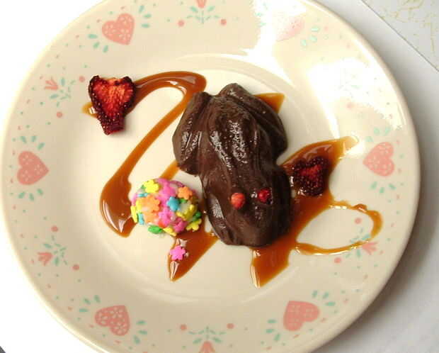 Podía hacer crema de queso y mantequilla de cacahuete para una especie de taza de mantequilla de maní de rana de chocolate.