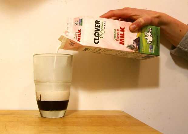Vierta 1 pulgada de leche en su vaso.