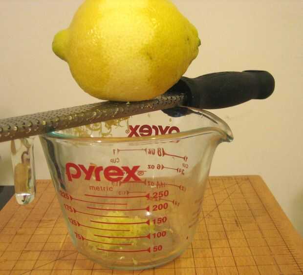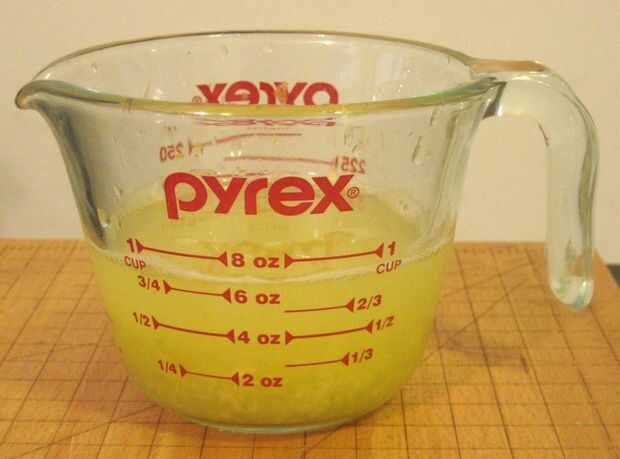 - Limones de jugo en la taza de medición hasta 1 taza de jugo, añadir a la mantequilla y la ralladura de