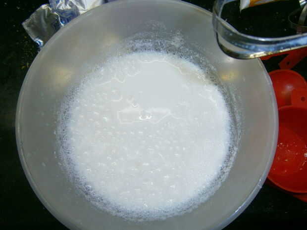 El azúcar en polvo. Montar ligeramente la nata con un batidor.