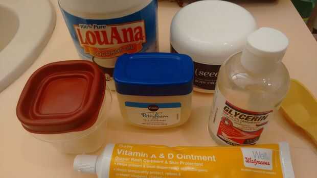 Nota útil, con respecto a la elección y el valor de los ingredientes: Nel137 como se señaló en los comentarios, "vaselina y aceite mineral no son cremas hidratantes. Sólo forman una barrera protectora que evita que la humedad salga la piel. El aceite de coco se hidrate, por lo que la combinación funciona."