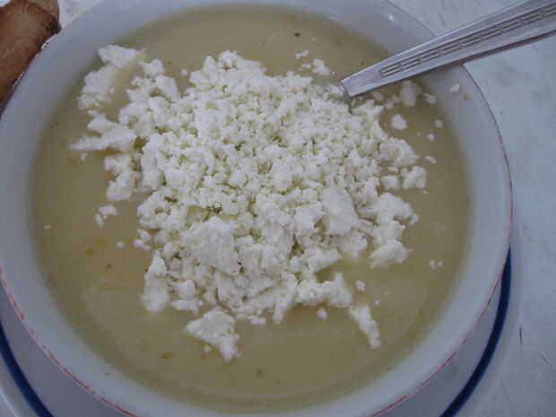 La sopa está lista para ser servida. Se puede servir con un brindis y un poco de queso blanco.