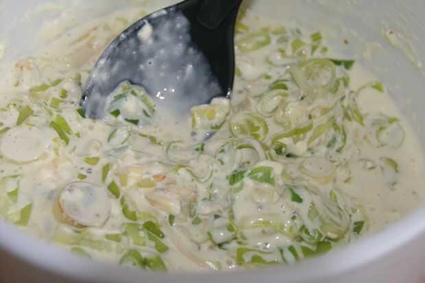 Revuelva los puerros cocidos con salsa cremosa. Condimentar a gusto.