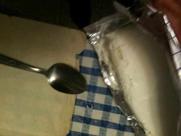 este es el primer esfuerzo en mi incursión en la fabricación de queso!Aparte del hecho de que estaba tratando de hacer ricotta, resultó muy muy bien.Es una textura ideal para untar. Mira cómo celebró la textura de la toalla de té estaba envuelta en!