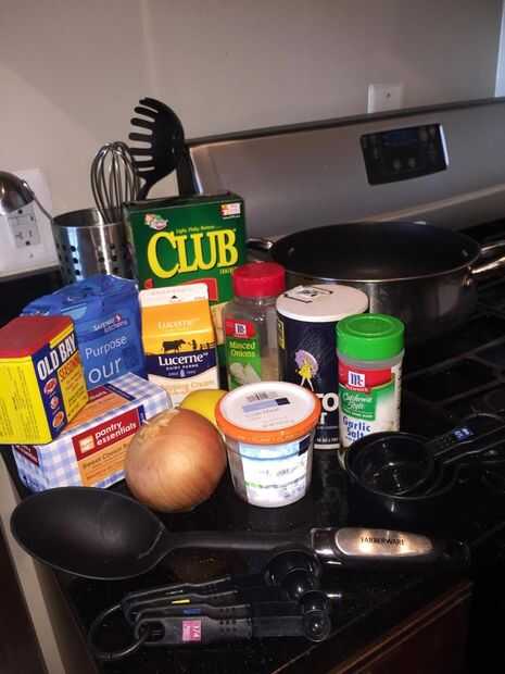 Sopa de patataTiempo de preparación: 15-20 minutosTiempo de cocción: 1-2 horas o más lento cocinaTamaño de la porción: 5-6Materiales: Cuchara de pan, cuchillo, corte de tablero, pelador de papas, galletas,Comida: 6 tiras de tocino, 2 latas de crema d