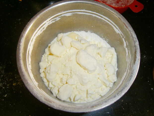 El azúcar en polvo. Luego añada la mantequilla y leche en polvo en la batidora o una licuadora.