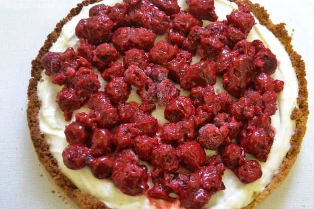 Si usted está usando bayas congeladas dejaron la tarta reposar hasta que las bayas son descongeladas, de lo contrario puede empezar a comer inmediatamente.