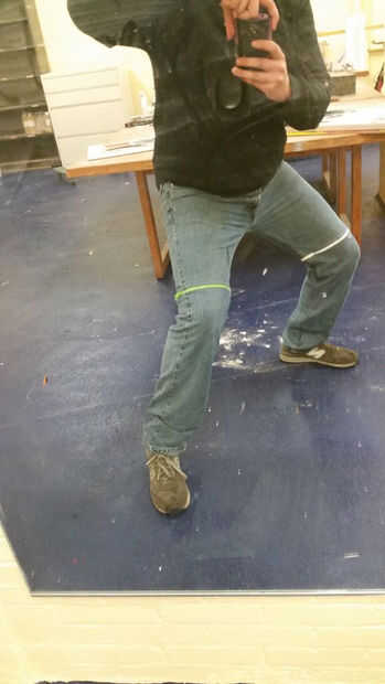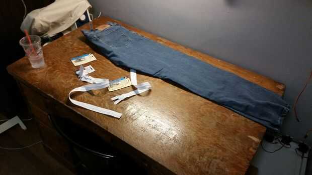 - dos cremalleras desmontables que son al menos tan larga como la circunferencia de una de las piernas de sus pantalones vaqueros (Nota: a menudo se vende como chaqueta o chaqueta de cremalleras)