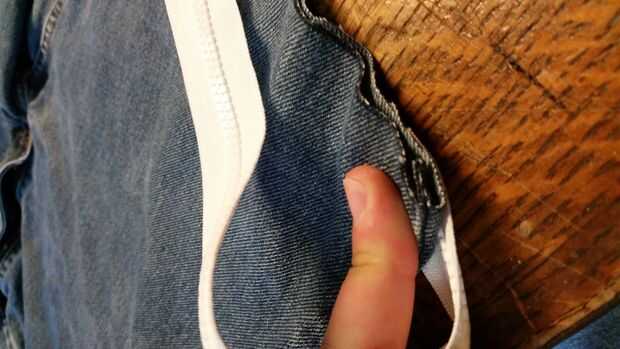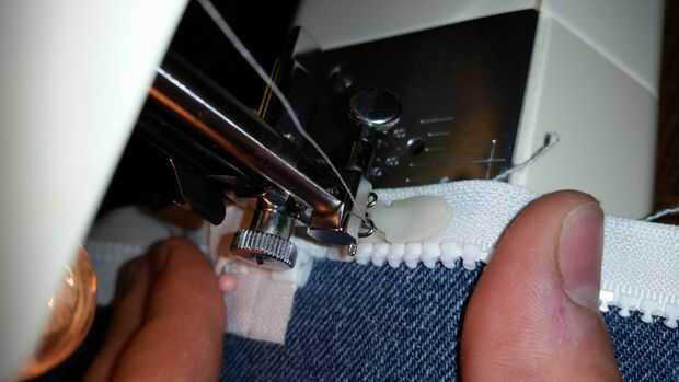 - Elegir la cremallera que va a ir en que pierna y cierre la cremallera cerrada para que sepas qué lado de la cremallera es la cara de la derecha. Hice mis pantalones con dos cremalleras de diferentes colores para que siempre serían capaces de saber rápidamente qué pierna perteneció a qué lado