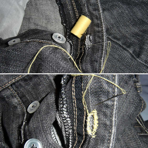 Después de crear su apertura hace unos puntos de sutura en cada extremo de la abertura, esto reforzar el ojal y evitar que al tejido rasgado cuando se inserta el botón.