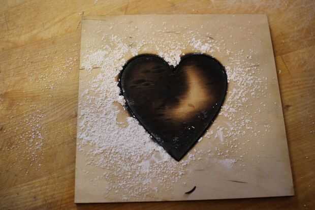 ¿Alguien tiene alguna idea brillante de cómo podría hacer este trabajo? Mi otra idea brillante fue a cortar un corazón utilizando un chorro de agua, el corazón a un trozo de metal de la autógena como asa, calor el corazón con una antorcha y utilizarla marca Creme brulee... Tal vez el año que viene.
