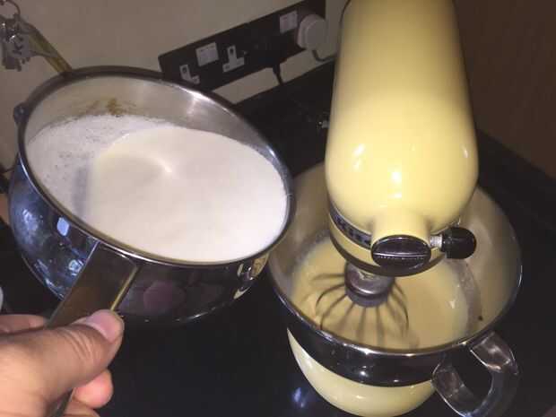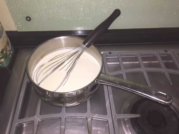Lo que queremos lograr aquí es calentar la leche y la crema para que la mezcla esté caliente pero no muy hirviendo.