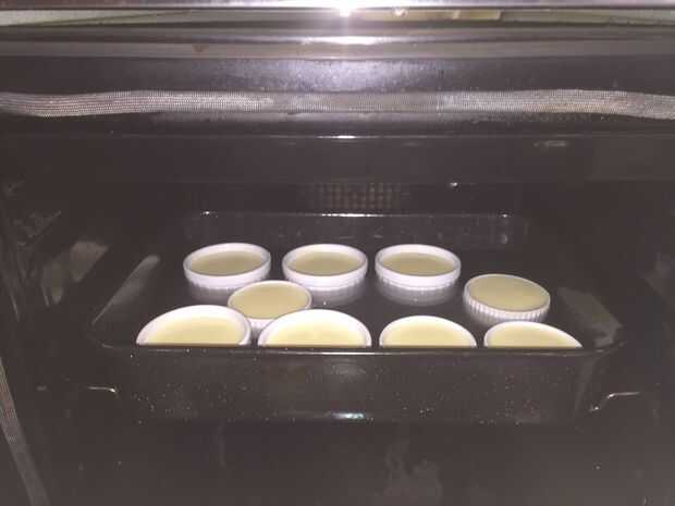 Deja los postres cocinar suavemente durante 40 minutos a 150 grados centígrados. Están listos cuando la crema se establece pero aún se tambalea cuando se les mueven suavemente.