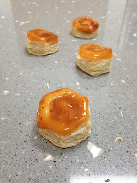 Estos pequeños placeres tienen corteza escamosa, mantecosa y un rico relleno cremoso todo rematado con una capa de azúcar derretida. Son como Creme brulees sin el apuro de antorchas y baños de agua, y no hay necesidad de platos o utensilios de servido! Son el bocado perfecto partido o caja con un lazo, que hacen un regalo de unas vacaciones perfectas! ¡ Disfrute!
