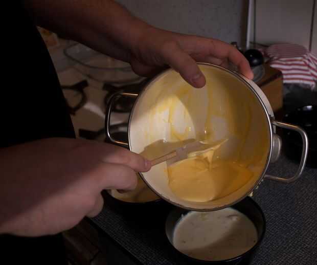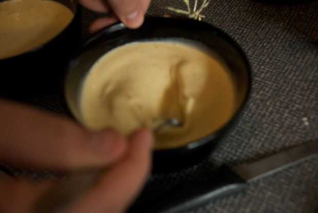 En las imágenes, dividir la crema de vainilla en dos tazones diferentes y añadir azafrán. En retrospectiva, esto no realmente traer nada bueno, ignorar lo que. La esencia es que necesita de la crema mezclar con todo lo del yema de huevo-azúcar.