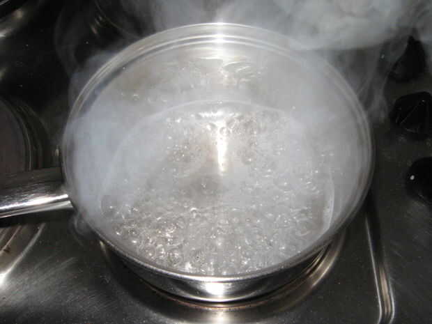 Poner el azúcar y el agua en una cacerola, poner a fuego lento y revolver hasta que todo se haya disuelto. Cuando tiene, subir el calor y no revuelva más. Esto es muy importante, ya que la agitación puede causar el azúcar se recrystalize.