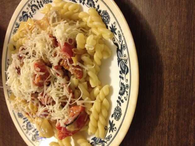 el sol tomates secos añaden un complejo sabor ahumado a cualquier salsa para pasta. Mezclándolos con pimientos rojos, plato quince minutos sabe a fue lento a fuego lento sobre la estufa durante horas.Con sólo cuatro ingredientes de la salsa, este pla