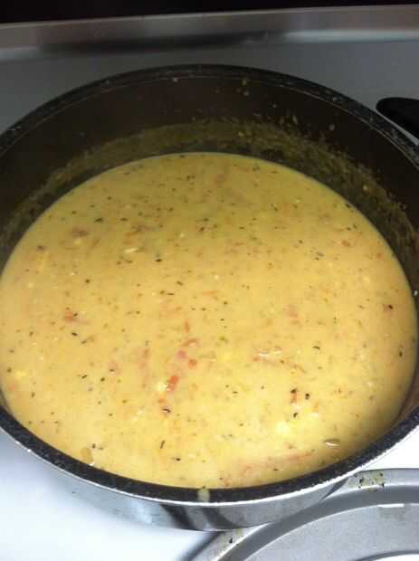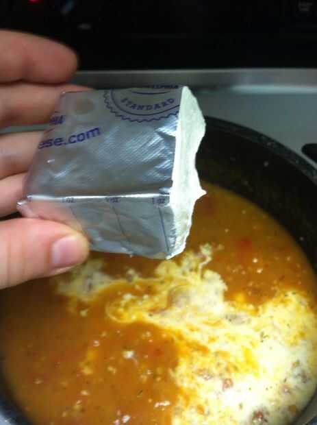 Agregar 2 1/4cups de medio n medio y 2 a 3 oz de queso crema (para un sabor más cremoso 3oz para más sabor tomate 2). Aumentar el calor a medio y agregue sal y pimienta para sabor. Cocinar por unos 5 minutos, agitando con frecuencia.