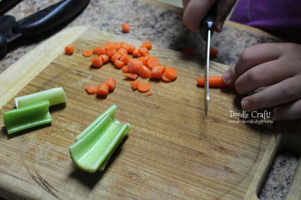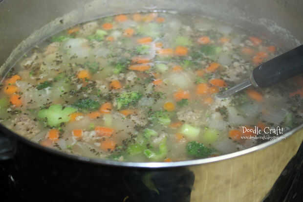 Añadir el caldo de pollo y 1 cuarto de galón de agua