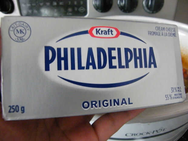 Abra la tapa y añadir 250 g desmenuzado queso crema, temperatura ambiente