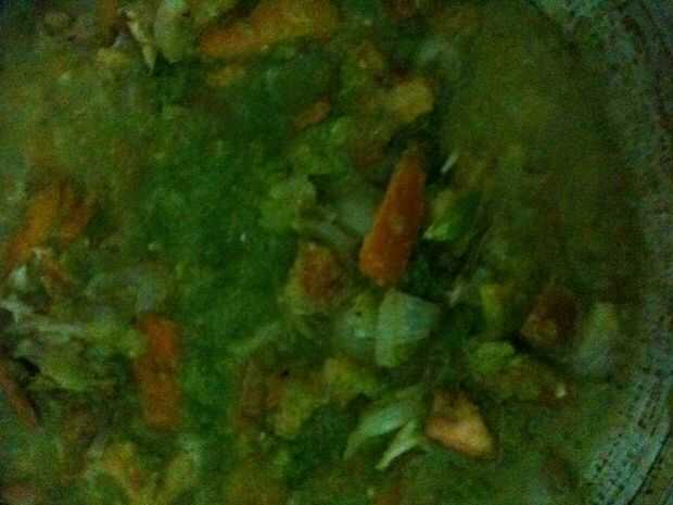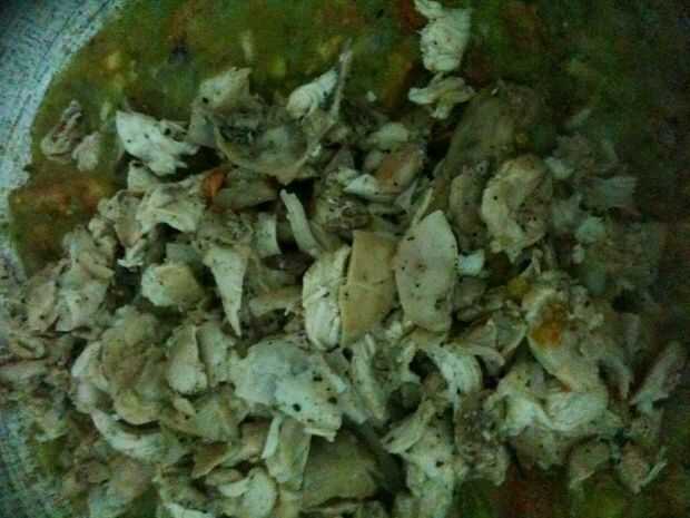 Añadir el pollo y la leche fina y luego la leche espesa y mezclar...
