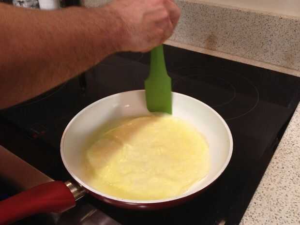 Voltee el crepe cuando la masa empieza a ver secador (color aligerará mientras se cocinan)