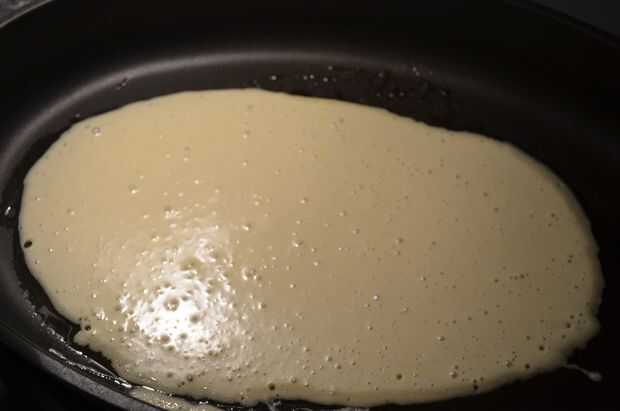 2. Ahora usted tiene que encontrar el recipiente más grande que tienes, porque tienes que hacer la tortilla más grande posible. Calentar la sartén, agregar aceite y luego añadir masa. Extendido la masa por toda la sartén para que pueda obtener una tortilla muy grande. Cuando las burbujas se forman sobre la superficie tiene que girar alrededor de la crepe. Cuando usted utiliza hasta principio de masa con el siguiente paso