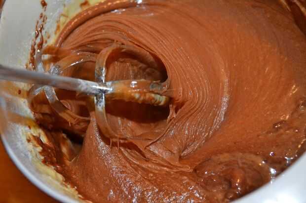 Añadir el chocolate fundido a los huevos y luego la harina y el azúcar. Mezcla todo bien y ahora está terminado!