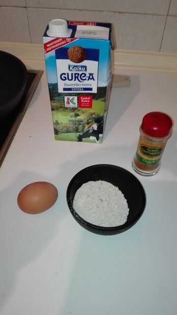 Paso 1: reunir los ingredientes para la masa. For the batter:1 taza de harina refinada2 cucharaditas de azúcar1/4 taza de harina de arrozuna pizca de semillas de mostaza1/2 a 2 tazas de lecheAceite, para cocinar esto.Paso 2: reunir los ingredientes p