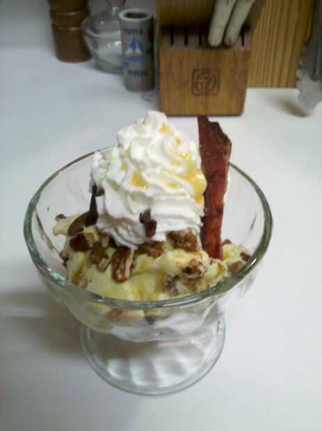 2. rocía algunas reducida jarabe de arce sobre el helado.