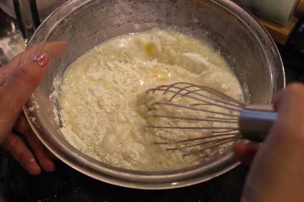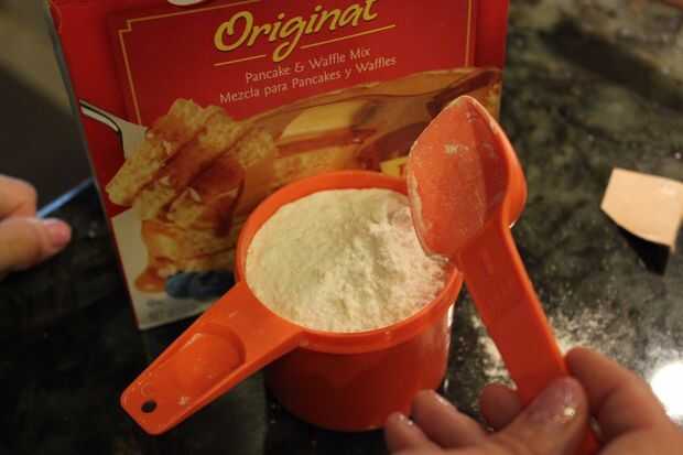 Las direcciones deben ser algo como 1 taza de mezcla, 1 cucharada de aceite, 1 huevo y 3/4 de taza de leche en un tazón. (o se puede usar la variedad donde usted necesita solamente agregar agua)