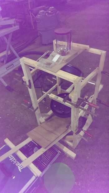 - Lugar la pieza de MDF con un agujero en la parte superior. Asegúrese de que quede centrado