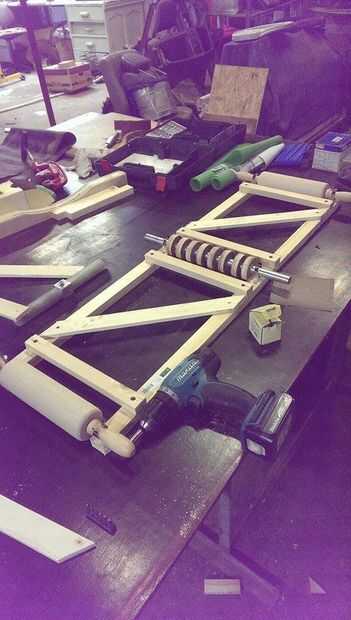La Asamblea de este es bastante sencillo. Hemos añadido un PDF con todas las dimensiones y donde todo pertenece. Hacer el marco, como lo hicimos en la foto, asegurando la pinrolls donde sea necesario. Tuvimos que improvisar y hacer nuestro propio ya que sólo teníamos dos. Después de esto agrega los soportes en la parte inferior y un mango que se muestra en el dibujo del CAD.