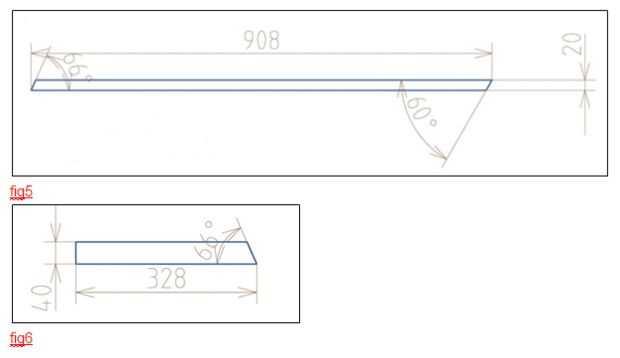 - 908mm (2 x) (y un chaflán de 66° en un extremo y a 60° en el otro) Fig 5