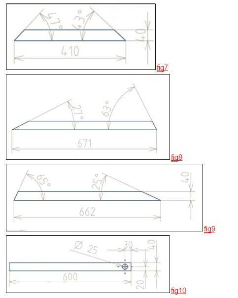 - 410mm (4 x) (con un chaflán de 47° en un extremo y 43° en el otro) Fig 7