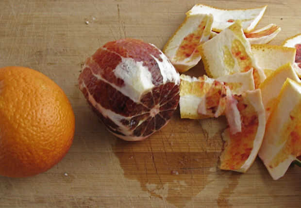 5. Apriete las pieles del centro sobre su tazón de supremes salir cualquier jugo que quede.