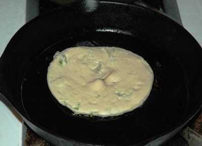 Crepe de cebollín chino 葱油饼Dificultad: fácilTiempo de preparación: 5 minutosTiempo de espera: 10 minutosTiempo de cocción: 6 minutosPorciones: 2Ingredientes:1 taza de harina para todo uso1/2 taza de agua caliente2 tallos de cebollitas verdes picadas1