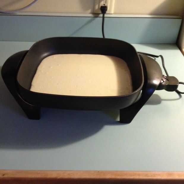 Paso 1: reunir los ingredientes para la masa. For the batter:1 taza de harina refinada2 cucharaditas de azúcar1/4 taza de harina de arrozuna pizca de semillas de mostaza1/2 a 2 tazas de lecheAceite, para cocinar esto.Paso 2: reunir los ingredientes p