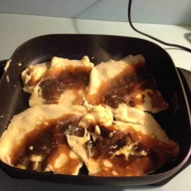 Cortar la tortilla en 4 trozos y vuelta cada pieza. En este punto los cuatro panqueques los pedazos deben tener listos para servir.
