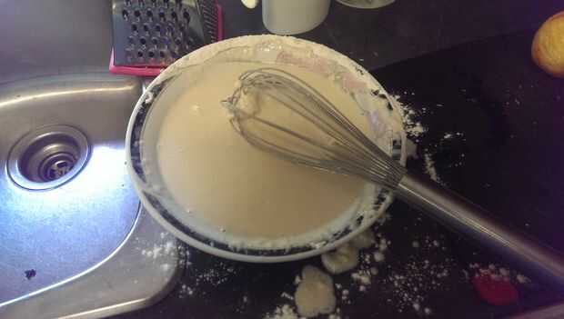 No hay ninguna técnica especial para esto. Coloque todos los ingredientes en el tazón de fuente que el agua y batir hasta que quede suave. El resultado final debe ser una mezcla bastante fina. Cerca de la consistencia del agua. Si es un poco grueso, que aquí es donde el agua se vierte pulg una cucharada en un tiempo hasta lograr la consistencia deseada se alcanza.