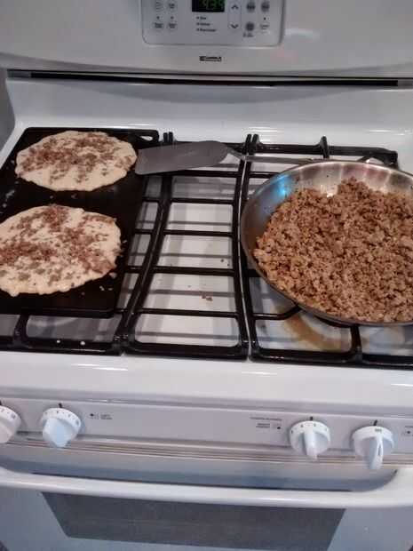 Comienzo hacia fuera calentando mi plancha. Un medio a fuego lento parece dar tiempo suficiente para cocinar los centros antes de las quemaduras externas. Si no tienes una plancha cuadrada de lujo usted puede cocinar ellos uno a la vez en un redondo pan... o uso dos sartenes.